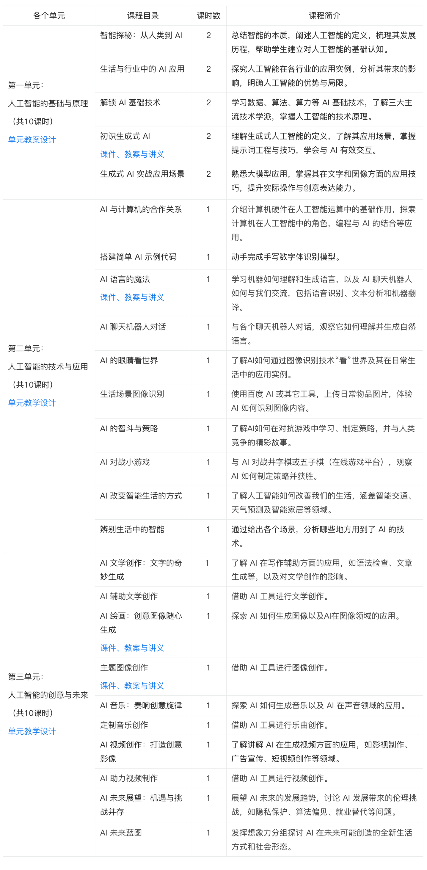 - 小学高年级段和初中阶段侧重理解和应用人工智能技术;